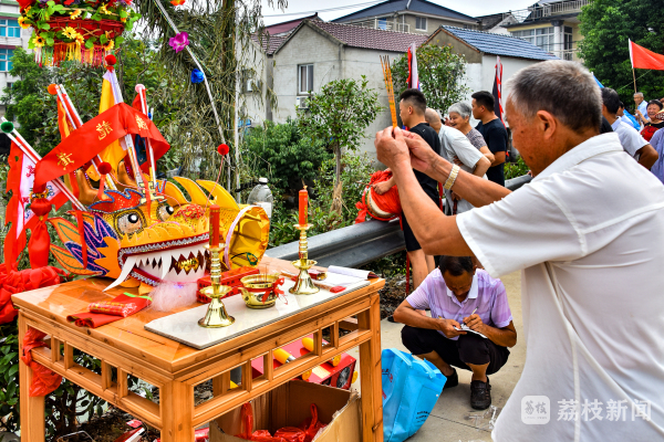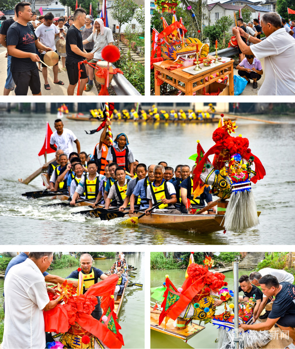 龙船下水仪式是这样进行的:一边是年青人在敲锣打鼓,一边是老者进行敬请龙头,然后给龙头掛红披彩,最后由村上的老人们进行开船试划,等到历六月初六这一天比赛时再由村上的年青人上场参加比赛。以上是2023年7月19日,封桥村在举行龙船下水仪式的一组镜头。