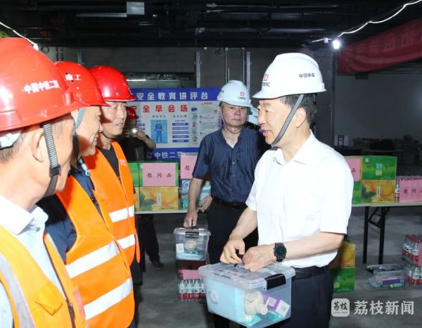 敔山湾科教项目位于江阴敔山湾东南角,将新建一所九年一贯制学校——华东师范大学江阴实验学校。目前小学部3栋教学楼主体结构已封顶,计划明年8月项目整体交付使用。在项目建设现场,包鸣为一线施工人员送上慰问品,叮嘱大家要注意防暑降温,科学安排户外作业时间,确保施工安全和工程质量。
