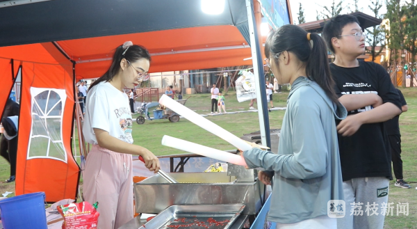 星空闪耀,凉风习习,在炙热难耐的夏日,赴一场21度的清凉音乐会,放飞身心,感受流行、民谣、摇滚、电音等多种音乐风格的碰撞。在聚焦游客引流、提升景区知名度的同时,活动举办方还创新消费业态,充分联动景区内旅游业态参与经营,搭建了美食集市、帐篷露营、户外烧烤等业态,提高旅游二次消费,点亮夏季夜经济新燃点。鸡蛋仔冰淇淋、铁板鱿鱼、水果捞……香气扑鼻的美食吸引不少游客驻足品尝,为夏日“夜经济”增添了一份新的活力。“这样的活动对我们商家来说是个挺好的机会,人流量大,生意也挺好,后面还有几天演出,相信生意会越来越好。”正在忙碌的商户浦晓烨高兴地说。