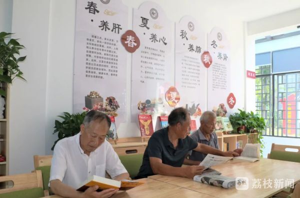 在幸福家园睦邻中心入口处,“夕阳红似火,正是好时光”公益标语十分醒目。往里走去是阅览区,有几位老人正在读书看报。社区工作人员介绍,这里书籍涉及历史、政治、文学等类,报纸有《老年周报》《扬子晚报》等。孙后富、傅金城、金克余等10多位老人都是这里的常客。