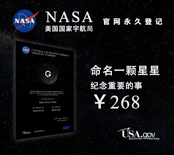 网上有售卖星星命名权的商家打出“美国国家宇航局官网永久登记”的宣传语。