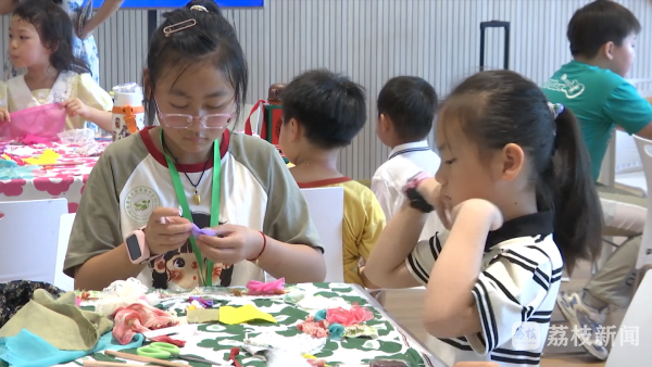今年暑期,南通美术馆推出了三个全新的艺术课程,涵盖艺术全天营、培养计划、超级搭建等不同主题。服饰设计课就是艺术全天营的第一期课程。在老师的指导下,他们通过裁剪、拼贴等方式将生活垃圾变废为宝,制作成各式各样的服装饰品。南通高新区小学四年级学生李家傲:“我就觉得这样子可以让我们的动手能力可以发挥得更好点,自己做的比在商店里买的更有成就感 。”