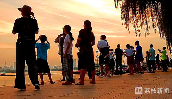 今天( 7月23日)迎来癸卯兔年第十二个节气——“大暑”。大暑相对小暑,更加炎热,“湿热交蒸”在此时达到顶点,今天最高气温达到34℃左右。傍晚,南京玄武湖畔棸集着众多纳凉市民和摄影爱好者,目睹玄武湖大暑节气美景,只听得咔咔的快门声,摄影爱好者们用相机记录一张张精美瞬间。