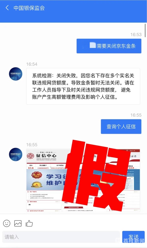 市民许女士最近接到一个陌生的FaceTime视频电话,对方自称是金融平台工作人员“小陈”,称许女士开通了某白条金融服务,在近期利率调整的情况下,如不及时关闭该项服务,每个月会产生2000元的滞纳金。“对方的摄像头是关闭的,我看不到他的脸,但他说会影响到个人征信,我就害怕了。”随后,许女士按照“小陈”要求添加了他的联系方式,根据“指导”搜索“注销关闭违规数据中心”,进入一个“中国银监会”网站。
