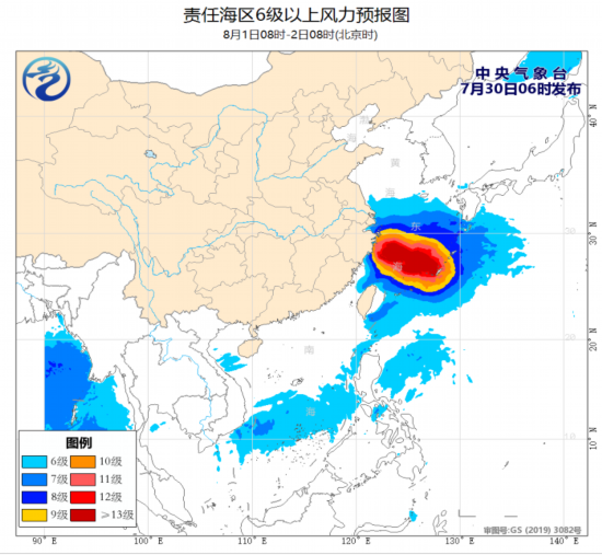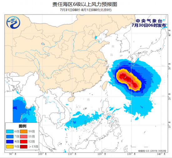 7月31日夜间至8月1日夜间,黄海南部海域、东海大部海域、台湾以东洋面将有6~7级、阵风8~9级大风,其中东海南部部分海域将有8~11级、阵风12~13级大风,台风“卡努”中心经过的附近海域风力可达12~15级、阵风16级。有关台风“卡努”的详细信息,请参见中央气象台最新一期《台风公报》。