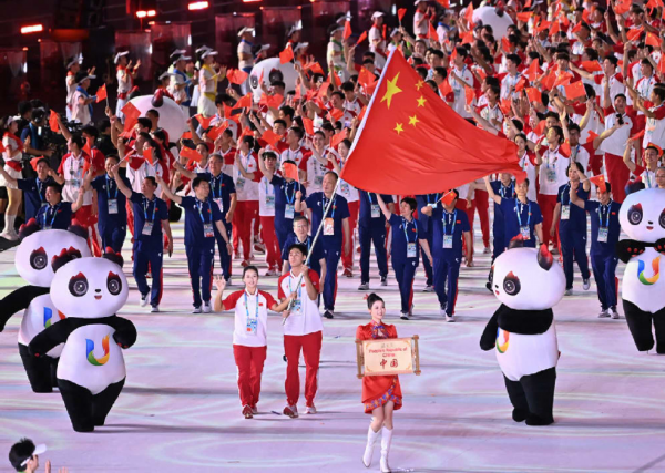 昨晚,第31届世界大学生夏季运动会在成都开幕。赛场上,6名“扬家将”亮相,他们分别是来自扬州大学体育学院的王富东、陈天宇和季杰,以及王琦、高兰和孟寅岑三名由扬州市培养输送的运动员。
