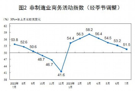 7月份,非制造业商务活动指数为51.5%,比上月下降1.7个百分点,仍高于临界点,非制造业继续保持扩张。