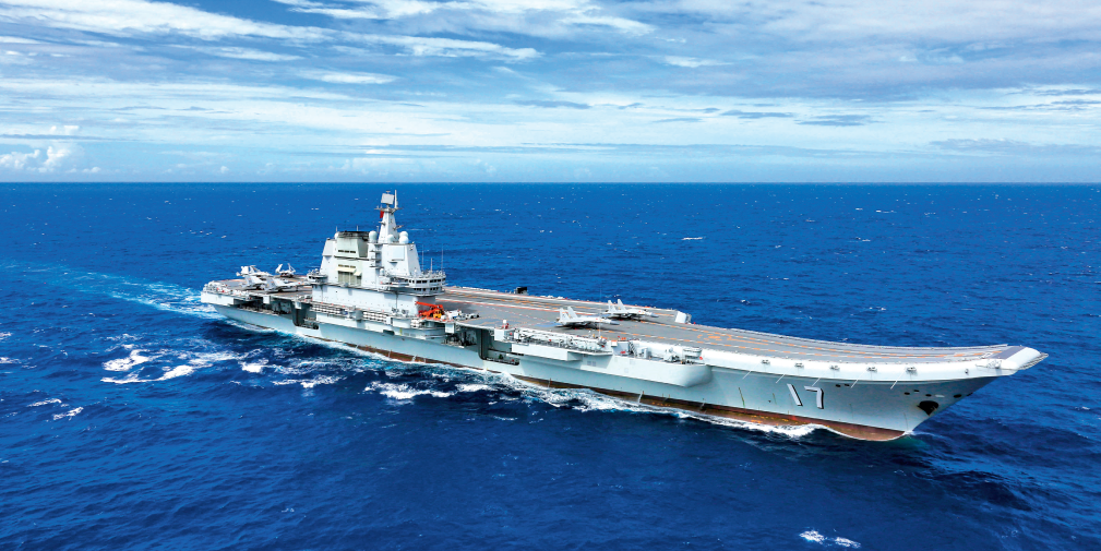 山东舰在南海某海域机动航行(2021年7月24日摄) 李刚摄/本刊