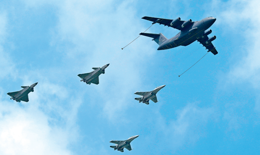 在2023年空军航空开放活动·长春航空展上,运油-20单机和歼-20双机、歼-16双机加油编队进行飞行展示(2023年7月26日摄) 余红春摄/本刊