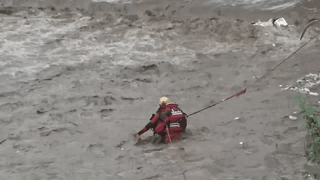 不慎被洪水冲入河道