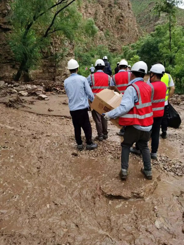 “还有8公里才能到沿河城站,前方路况复杂、列车无法继续前进。没有路,我们就蹚出一条路,背着物资走进去!”8月1日7时左右,195名运送物资突击队人员以肩扛手提、徒步搬运的方式,分批将生活物资往沿河城站运送。