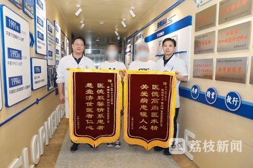 “谢谢!感谢你们的专业和精准治疗,我才能恢复得这么好。”7月28日,出院前,小李和爱人将写着“医德高尚医术精,关爱病患暖人心”“医德双馨情系患者,悬壶济世医者仁心”的两面锦旗献给中大医院肝胆胰中心程张军主任医师和介入与血管外科朱海东副主任医师,感激之情难以言表。