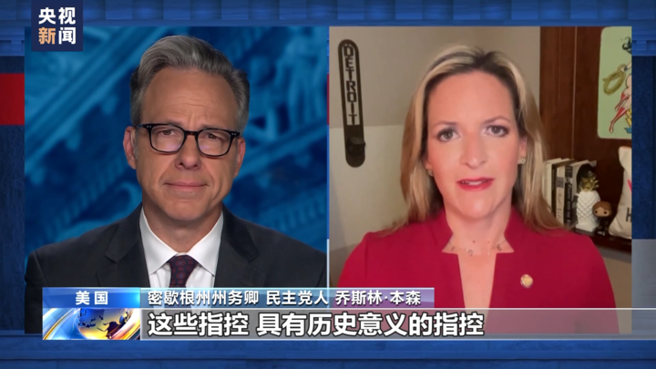 密歇根州州务卿、民主党人 乔斯林·本森:这些指控,具有历史意义的指控,是基于全面的调查,我相信指控是依法进行的。其次,这些指控让我们想起2020年所经历的。一名美国总统试图推翻选举结果,并导致2021年1月6日发生国会暴乱事件,这是史无前例的、非同寻常的事件。