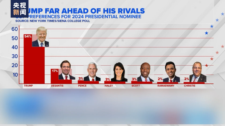 路透社等媒体指出,特朗普将指控变为自己的竞选手段,把自己塑造为受害者的形象,为竞选造势。民调也显示,官司缠身的特朗普支持率不降反升。《纽约时报》和西恩纳学院近日发布的一项联合民调结果显示,特朗普在共和党内获得的支持率遥遥领先,超出位列第二的竞争对手37个百分点。