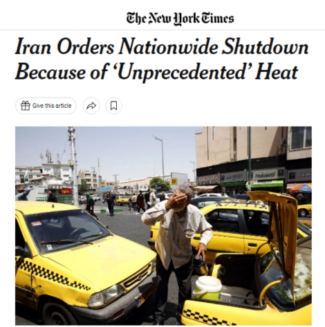 据《纽约时报》报道,当地时间8月1日,由于遭受“前所未有的高温”天气,伊朗宣布全国政府机关、银行和学校放假两天。