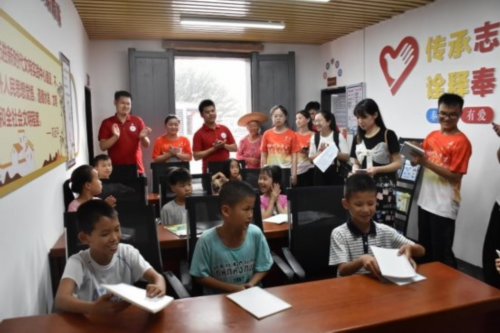 实践队组织留守儿童在村里的“童心港湾”开展趣味学党史、防暑和防溺水宣讲、辅导暑假作业等活动,引导少年儿童将理想信念和爱国主义根植心间。