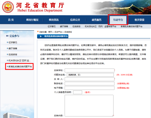 央广网北京8月1日消息 为进一步规范河北省教育领域收费管理,解决人民群众“急、难、愁、盼”问题,保障学生和家长切身利益,河北省教育厅于2023年8月1日起,在官网正式上线“教育乱收费反映问题平台”。