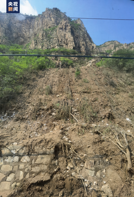 07:00,雨停了。西南侧的山体两侧因为有土,已经滑坡,泥石流把公路和铁路都埋了。从公路出去的希望不大,只能等待清障车清理火车轨道。