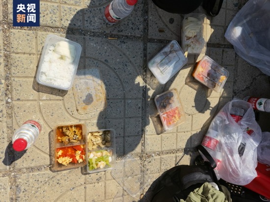 17:00,发晚餐,一人一个面包,一根火腿肠,一颗卤蛋,一罐八宝粥。物资空投落地后包装就散了,加上比较狭窄,又有螺旋桨风力的作用,很多物资散在坡上或落到水里,工作人员再去人工收集。食物目前看还算充足,水资源比较紧缺。
