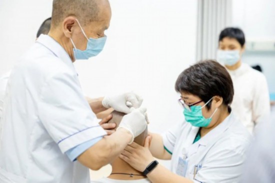 苏州市高新区横塘街道社区卫生服务中心针灸康复科医师在为患者治疗。(苏州市高新区横塘街道社区卫生服务中心供图)