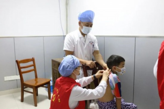 正值三伏天,许多家长带孩子来到苏州市吴中区越溪街道社区卫生服务中心中医馆贴三伏贴。