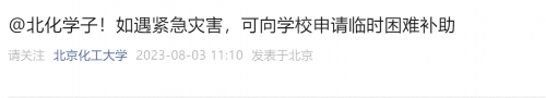 北京化工大学表示,学生可通过企业微信-工作台-审批-紧急灾害临时困难补助申请,如实填写个人信息及家庭受灾情况;院系资助负责人在企业微信上进行审核;学生资助管理中心和党委研究生工作部审批、发放临时困难补助。