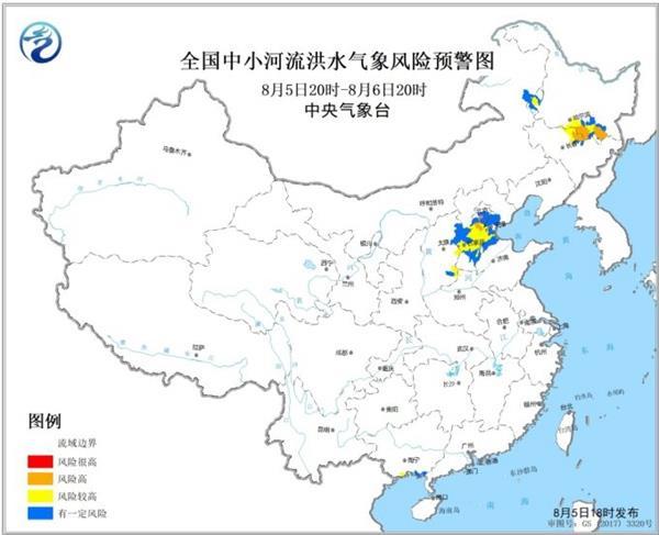 中央气象台8月5日18时发布中小河流洪水气象风险预警: