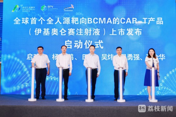 为进一步深化“放管服”改革,促进生物医药产业创新,8月4日,江苏省药监局审评核查江北新区分部在新区南京生物医药谷揭牌。分部将优先就近为新区省级药品审批监管和医药产业高质量发展提供技术支撑和服务支持,着力打造新区(自贸区)新医药与生命健康产业创新发展的区域服务特色。揭牌仪式上,新区企业驯鹿生物自主研发的全球首款全人源靶向BCMA的CAR-T产品同步上市。