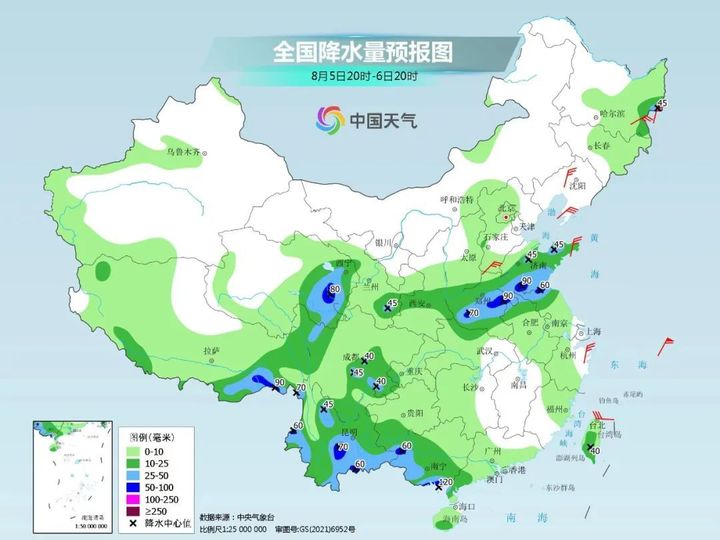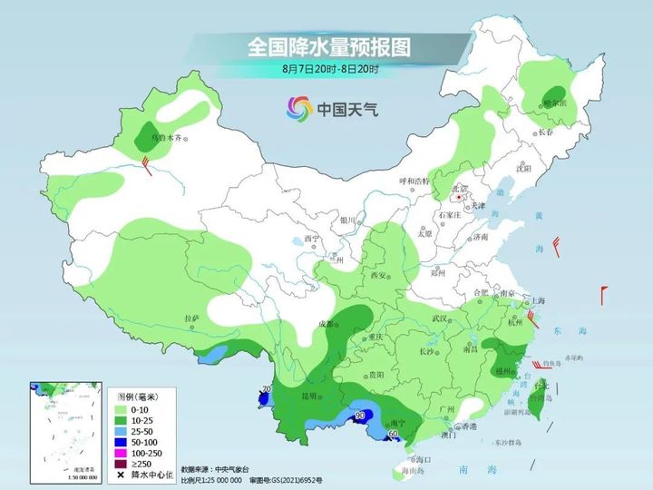 ②8月5日夜间至8日,广西南部和西部、广东西南部、云南等地的部分地区有大到暴雨,局地大暴雨。