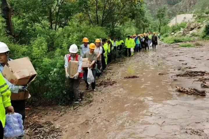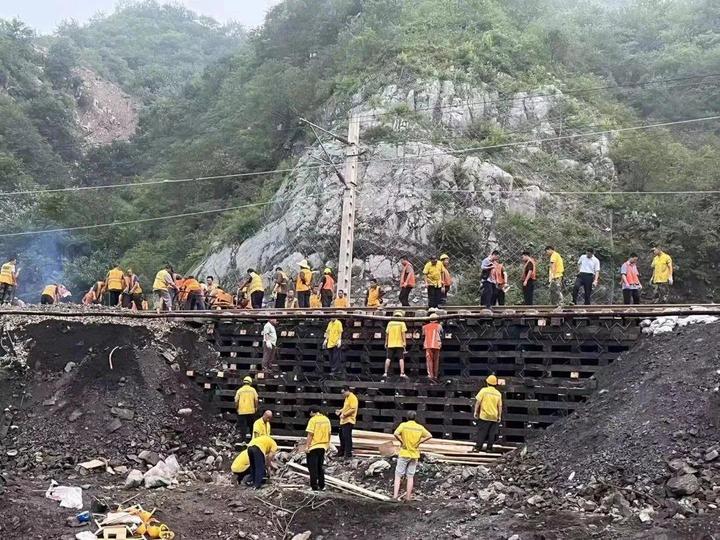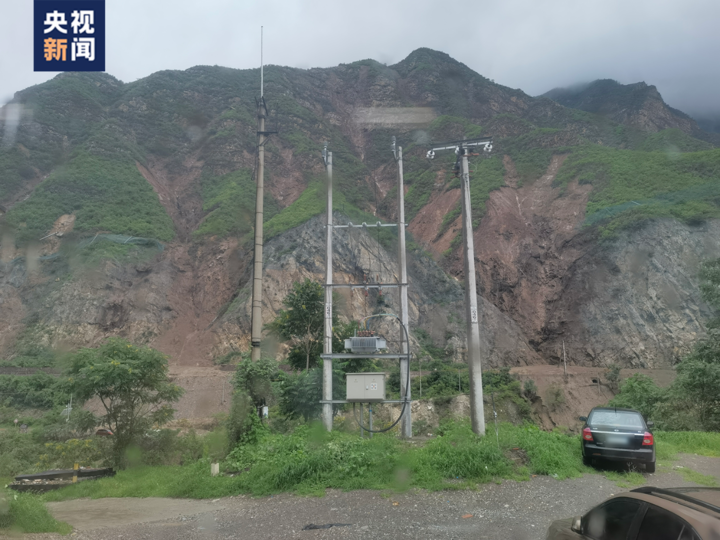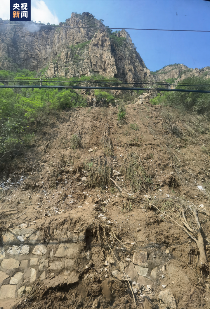 △西南侧山体滑坡后,中间是石头,两侧的土已经被冲垮,植被已经不见。
