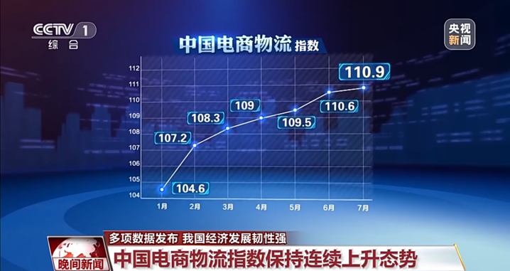 中国物流与采购联合会7日公布:7月份中国电商物流指数为110.9点,比上月提高0.3点,保持连续上升态势。