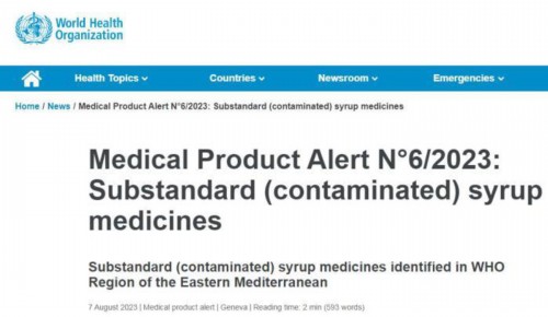 自2022年10月至今,世卫组织曾多次就其他受污染液体剂量药品发布警报。