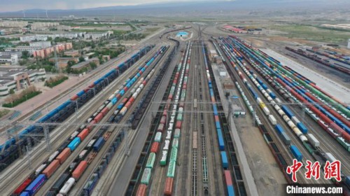 新疆阿拉山口中欧班列出境货场。宋玉龙 摄