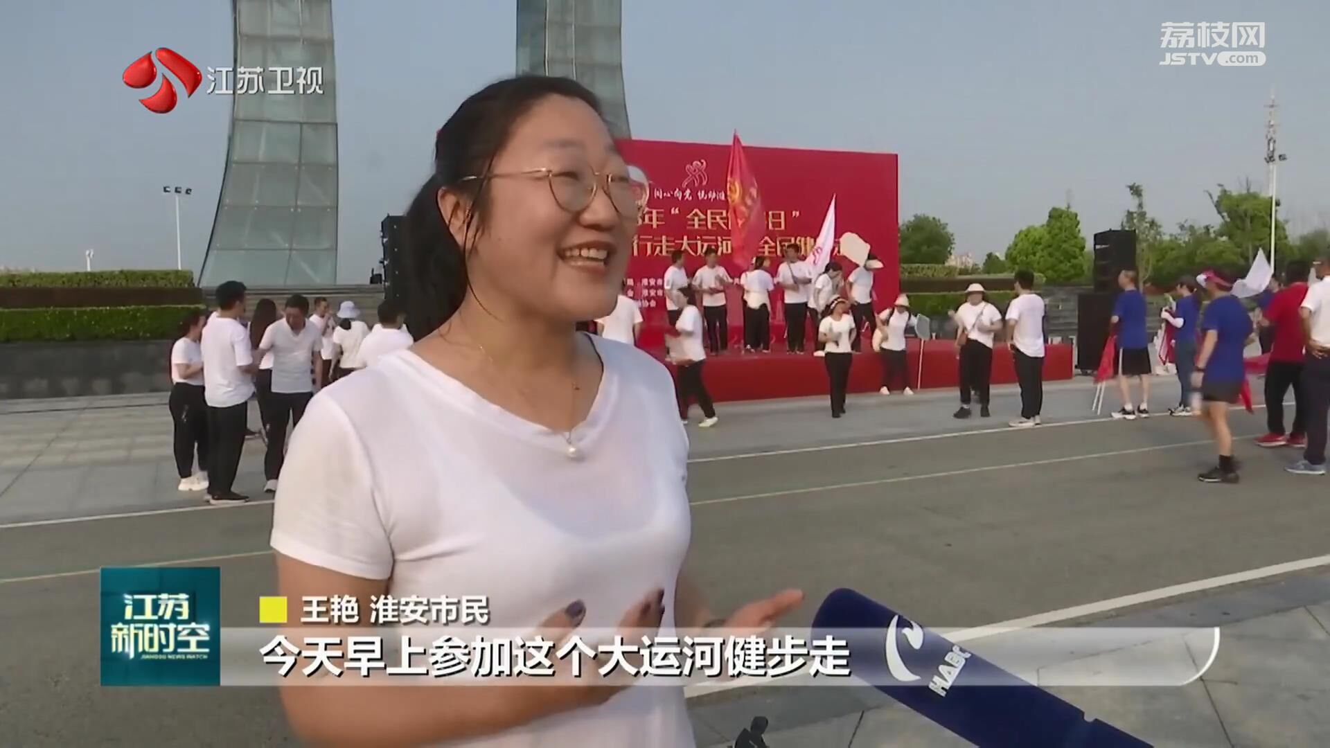 淮安市民王艳说:“今天早上参加这个大运河健步走健身走,我还是第一次。我感觉特别开心。我也希望这样能够全民共享,能够传递下去。”