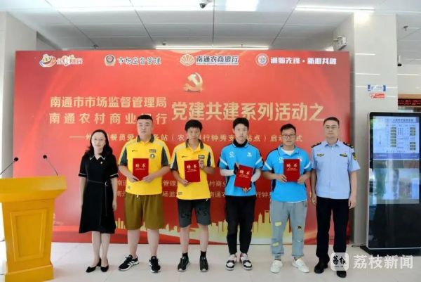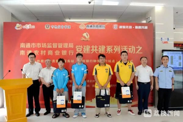 南通首个外卖送餐员爱心服务站位于南通农商银行钟秀支行,是市市场监管局与南通农商银行党建共建的一个有力探索和有效举措。爱心服务站打造“学习、休息、问需、宣传”于一体的红色服务平台,体现了党的温暖和行业党委的关心和关爱,外卖送餐员在此可以享受到“冬取暖、夏乘凉、累歇脚、渴有水、伤有药”的爱心服务。