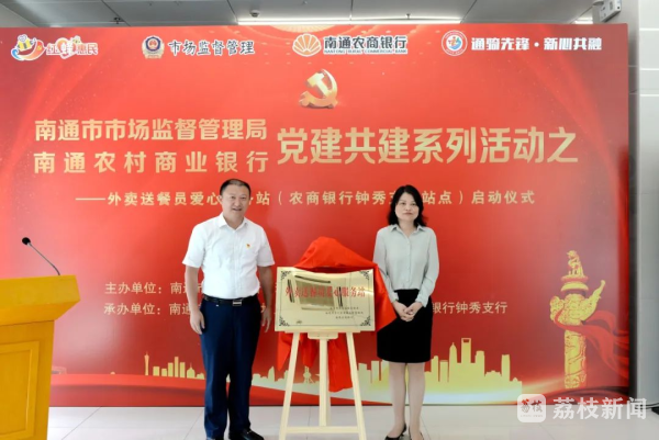 记者今天(8月8日)从南通市场监管部门获悉,日前,由南通市场监管局与南通农商银行联合打造的首个外卖送餐员爱心服务站正式揭牌启用。