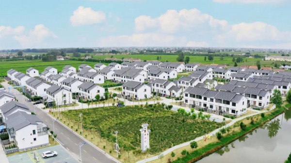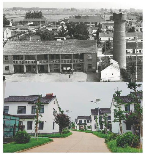 从空中航拍俯瞰当年开荒者自建的平房,新世纪之初新农村建设的楼房,近年来兴建的农房改善集中居住社区。