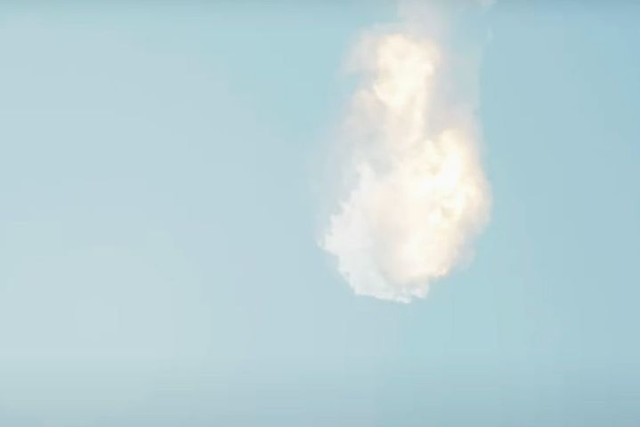 这张4月20日由美国太空探索技术公司提供的视频截取的图片显示,新一代重型运载火箭“星舟”以及飞船集成系统在位于得克萨斯州博卡奇卡的发射基地升空后发生爆炸。新华社发(美国太空探索技术公司供图)