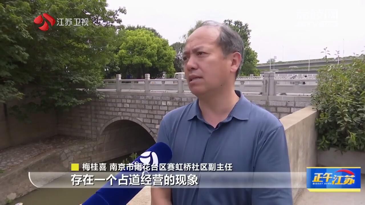 南京市雨花台区赛虹桥社区副主任梅桂喜说:“因为赛虹桥这边临近长虹路,长虹路有一个秦淮区银桥大市场,银桥大市场内部的空间比较狭小,很多经营户上货下货,放到长虹路的人行道上面来进行上货下货,存在一个占道经营的现象,然后也为周边居民出行带来一个不方便,这种现象确实是存在的。”