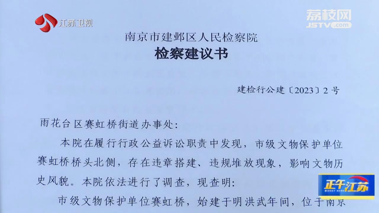 今年4月26日,建邺区人民检察院向赛虹桥街道发出行政公益诉讼诉前检察建议书。
