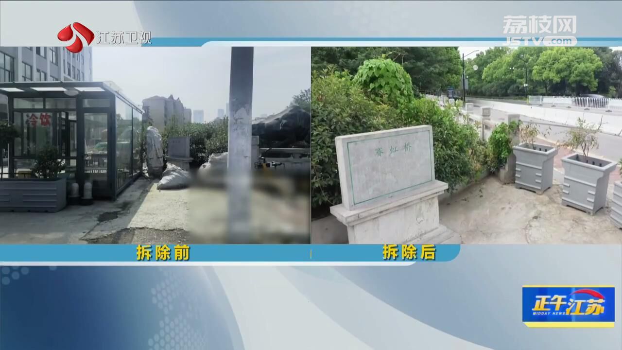 张宇表示:“赛虹桥街道给我们的复函中认为,这处简易门岗是不需要审批手续的,但是我们查阅了南京市建设工程规划的豁免清单,里面指出,只有小区内部的简易门岗不需要审批手续,赛虹桥周边的这处简易门岗是不属于小区内部的,仍然需要审批手续,是属于违建。更何况它位于我们的文物主体保护范围之内。随后,我们也对整改效果进行了查看,发现该处违建仍未拆除,并且周边堆放的杂物的清理效果不佳。”