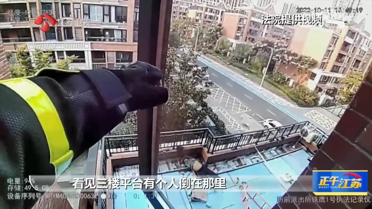 现场救援人员说:“我们敲开了401住户的门,看有个人倒在那,旁边有个梯子,我们呼叫躺在那里的人,没有反应。”