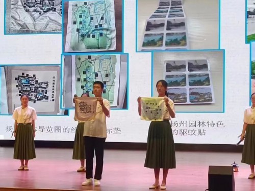 "我们自己制作了钓鱼台的积木,在展示会现场大家都特别喜欢;因为夏天蚊子多,我们还定制了一些印有扬州园林经典的驱蚊贴。"一些实用可爱的文创产品也获得了好评。针对扬州园林的发展,同学们也提出了系列建议,包括加强扬州园林形象宣传、发掘扬州文旅独特魅力、开发扬州园林文创产品等。