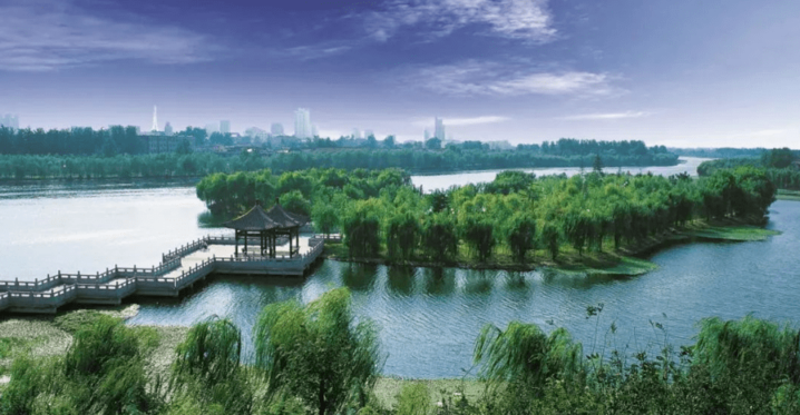 到古黄河水利风景区,欣赏水色灵秀,邂逅景观桥梁。景区中水清岸绿,绿荫树浓,桥梁横卧,古色古香的九龙塔、七凤塔巍峨耸立,树荫、塔影倒映在水中,组成了初秋的美好风光。