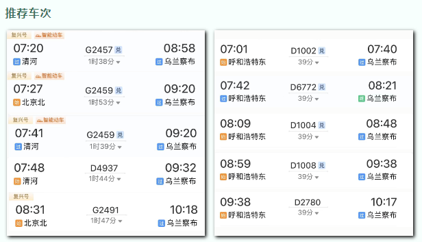 旅客可乘高铁到达乌兰察布站,然后乘坐高铁旅游直通车前往辉腾锡勒黄花沟草原旅游区。