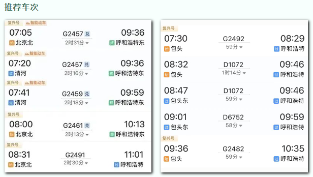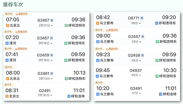 游客在呼和浩特站或呼和浩特东站下车后,可乘坐大巴经乌兰花镇前往格根塔拉草原,车程约一个半小时。