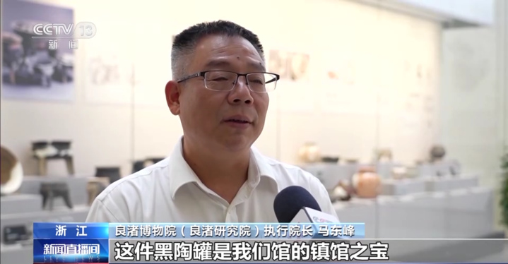 良渚博物院(良渚研究院)执行院长 马东峰:这件黑陶罐是我们馆的镇馆之宝,陶器本身制作得比较精美,比较规整,反映了良渚时期陶器制作比较高的一个水平。这个陶器肩部一圈刻有12个刻符,这些符号对研究中国文字的起源问题,有特别重要的价值。现在来看,这12个刻符应该是讲了一件事情,大概是良渚的先民用网用箭去猎捕一只老虎的故事。