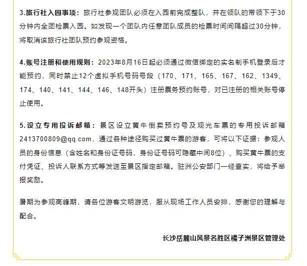 橘子洲景区关于实施打击黄牛倒卖预约号行为相关事项的通告