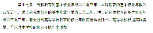 根据国家高等教育基本制度规定,硕士研究生教育的基本修业年限为二至三年,博士研究生教育的基本修业年限为三至四年。非全日制高等学历教育的修业年限应当适当延长。高等学校根据实际需要,可以对本学校的修业年限作出调整。