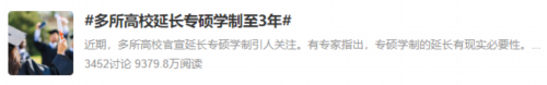 过去几年,国内多所高校已经开始对研究生学制进行调整,延长学制,尤其是专硕学制,成为了一种趋势。去年10月,话题#多所高校延长专硕学制至3年#一度冲上热搜,引发广泛关注。
